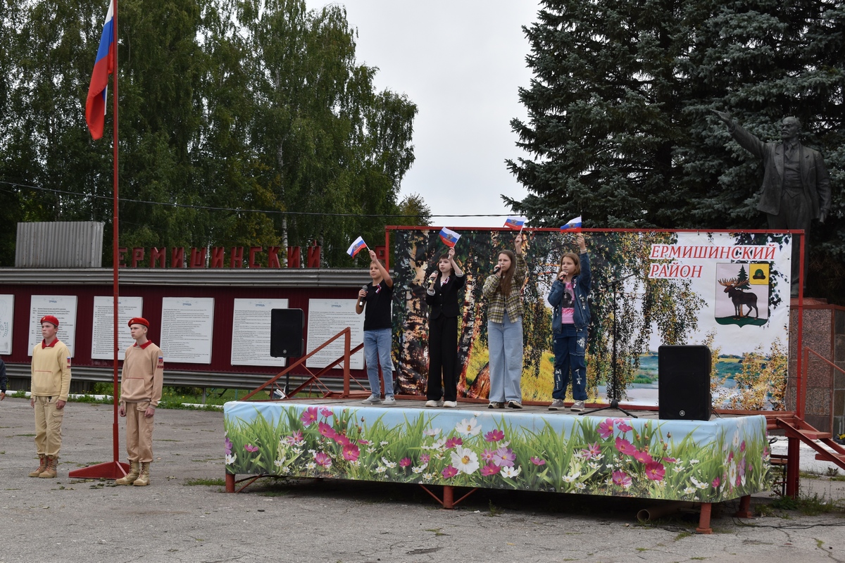 Ермишинцев и гостей поселка поздравил глава администрации района Юрий Виноградов. С музыкальной программой выступили работники районного Дома культуры, дети. Главная тема концертной программы – российский флаг, его история и значение.
