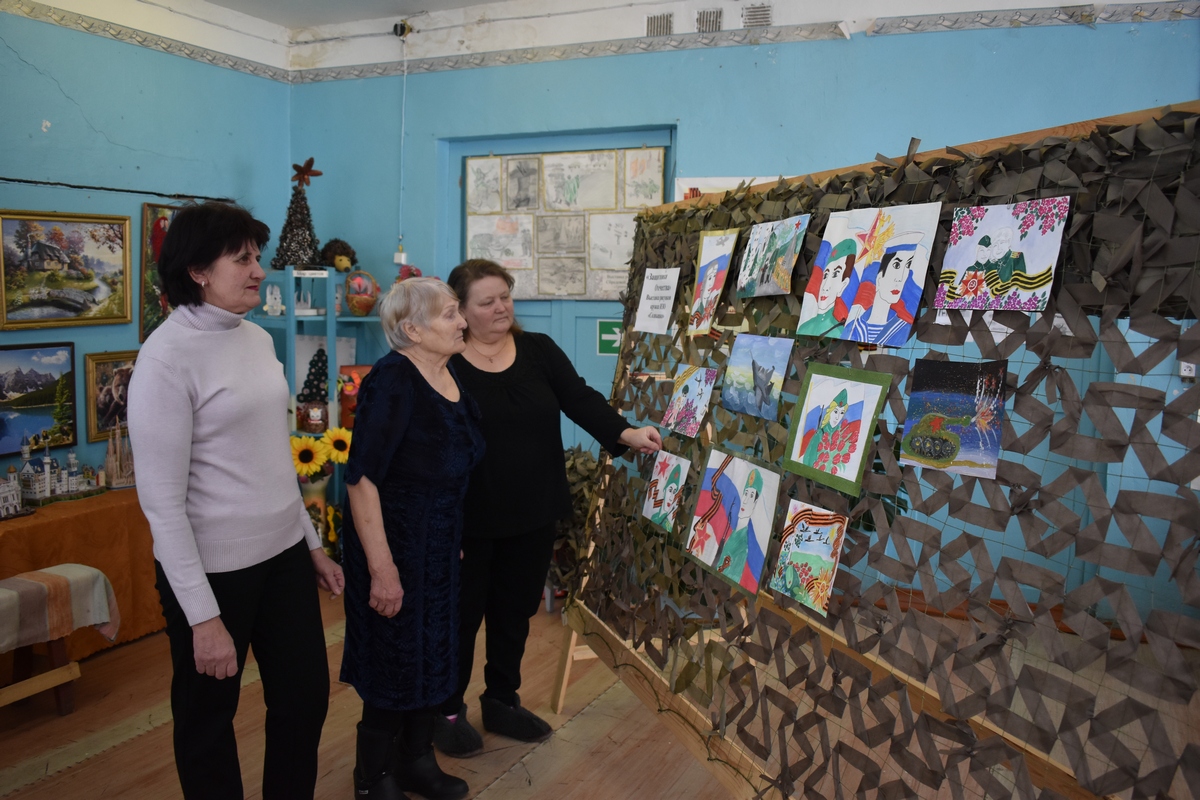 «В каждом рисунке чувствуется душа ребенка, его особый взгляд. Детские работы наполнены светом, добротой. Маскировочная сеть, на которой мы расположили рисунки, – не декорация. Более ста сетей, сплетенных руками наших односельчанок, мы отправили на фронт. Вместе со следующей партией гуманитарного груза передадим бойцам и детские рисунки».