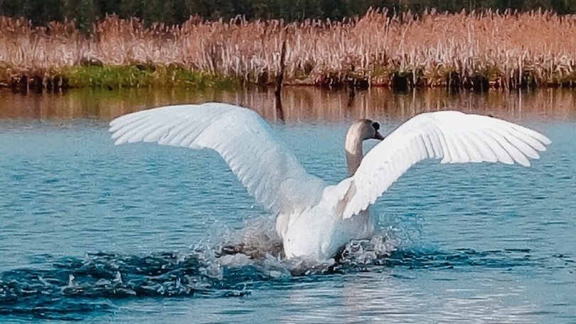 В Ермишинском районе в объектив камеры попал белый лебедь