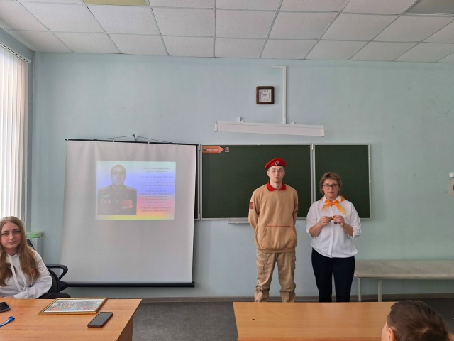Его провели командир юнармейского отряда «Соколы имени Героя Российской Федерации полковника Сухарева Сергея Владимировича» – Игорь Медников и советник директора по воспитанию – Наталья Кузнецова.