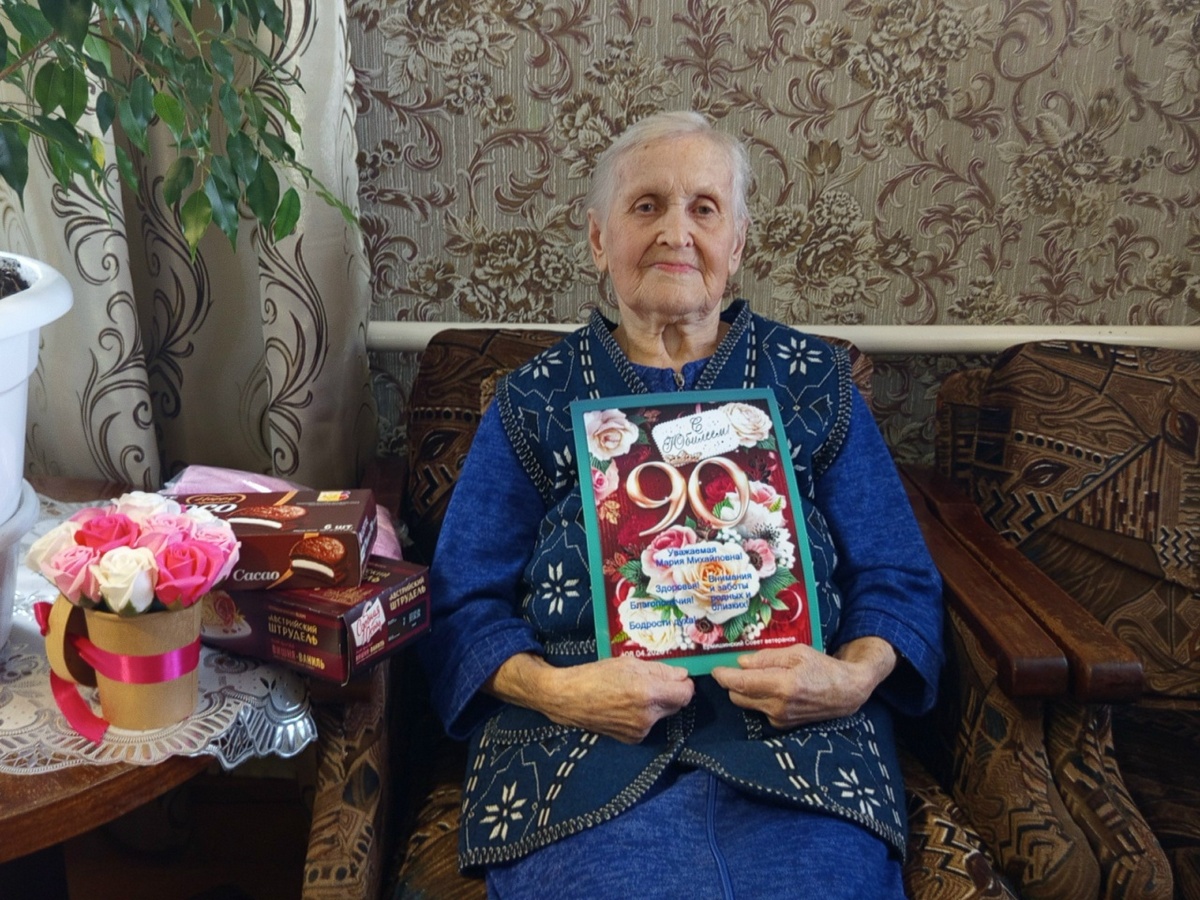 С юбилеем Марию Михайловну поздравила председатель совета ветеранов Татьяна Михалина. Она пожелала юбилярше крепкого здоровья, благополучия, любви и внимания родных и близких, а также вручила подарок.