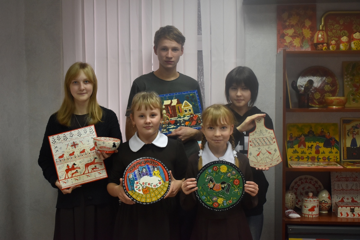 «Свои работы дети выполнили в городецкой и мезенской технике. У каждого – свой особый творческий почерк, своя отражающая глубина раскрытия темы. Они – молодцы!»